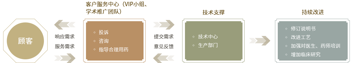 通过直面消费者方式,对患者进行专业的用药指导和咨询服务,保障合理用药,同时收集患者反馈信息,分析改进,持续改进质量安全体系,有效保障公众健康安全。