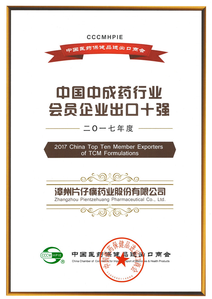 2017年度中国中成药行业会员企业出口十强